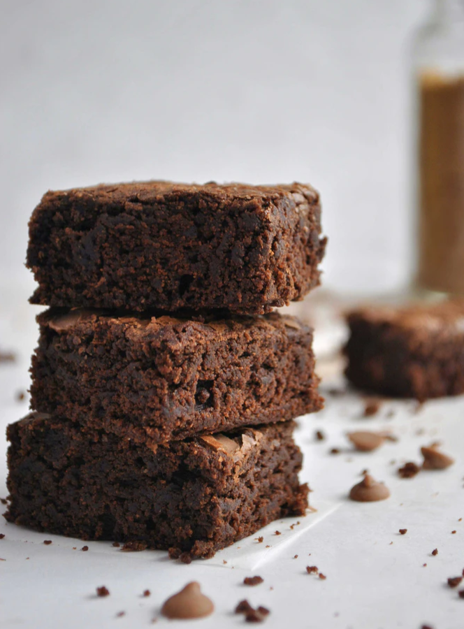 Kom dejen i en lille smurt bradepande og bag brownien i 40 minutter, til den er fast, men stadig blød i midten